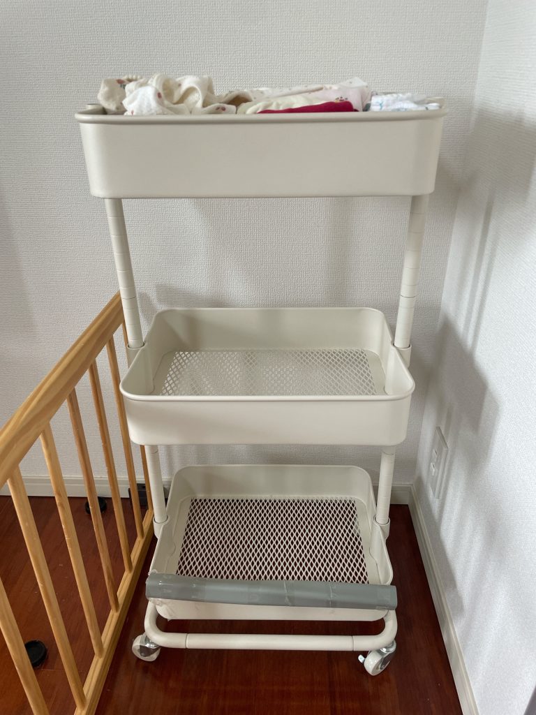 - ベビーベッドに住所不定の物の山が埋もれている
